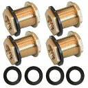 Hourleey ソリッド真鍮バルクヘッドフィッティング、1/2 インチメス 3/4 インチオス GHT ソリッドブラス水タンクコネクタ、ゴムリング付き、4 セット Hourleey Solid Brass Bulkhead Fitting, 1/2" Female 3/4" Male GHT Solid Brass Water Tank Co