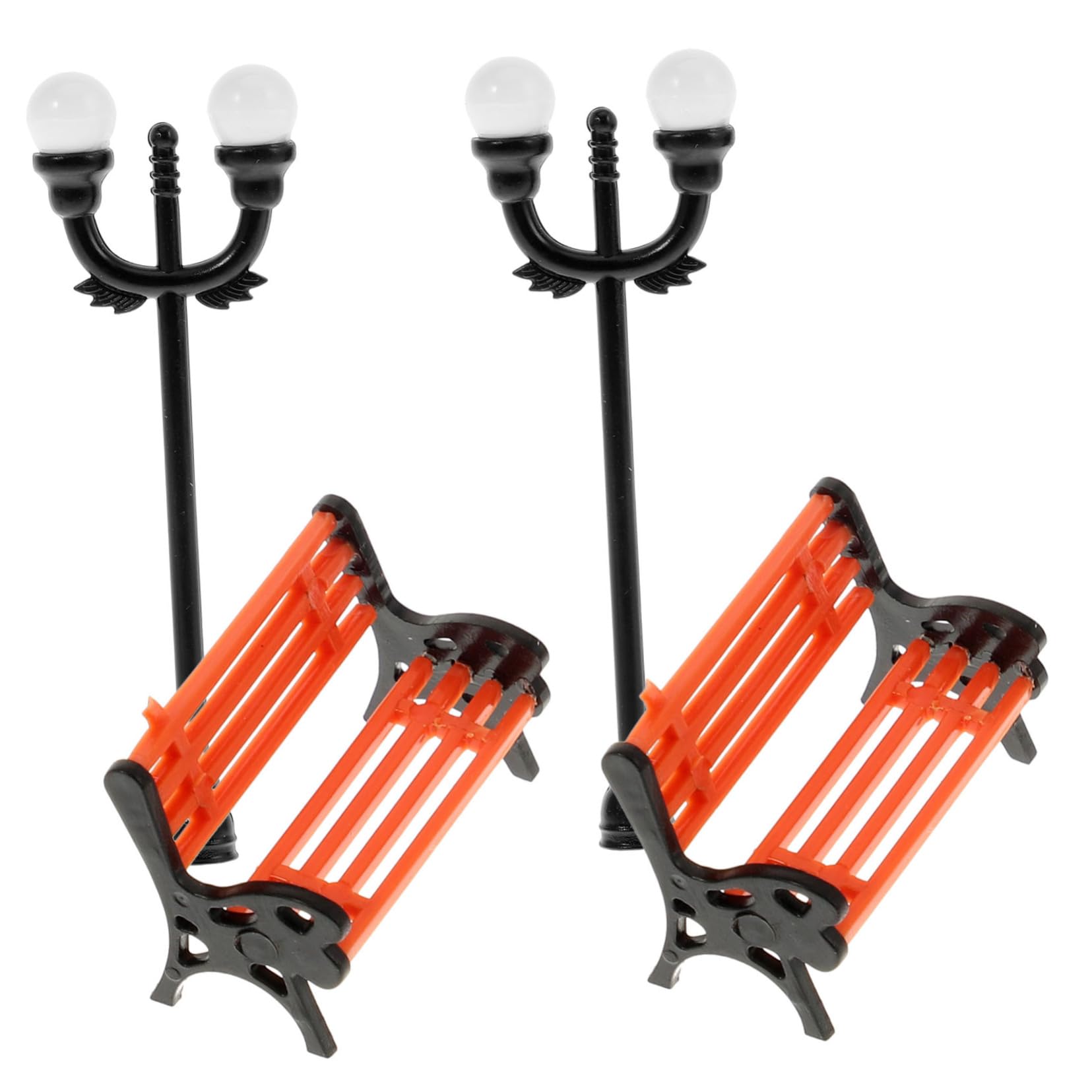 2個セット ミニパークチェアロード の家具 ミニ長椅子 ミニ街路灯 ミニシミュレーションモデル マイクロランドスケープミニチュア 素敵な街灯柱 ミニチュア装飾品 プラスチック