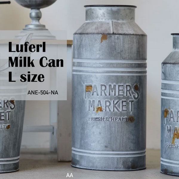 まるで 長い年月が経ったような加工が施された ヴィンテージ感溢れるミルクカン お部屋や廊下などに飾ると、存在感抜群です。 シンプルなデザインとアンティーク加工がカッコいいです。 造花やドライフラワーを飾るとおしゃれです。 なにも入れずに置くだけでもGood! 3サイズ(S・M・L)展開です。 Sサイズ:φ14.5×H:30cm Mサイズ:φ18×H:37cm Lサイズ:φ22.5×H:43cm 素材・成分:素材:アイアン 火の側に置かないでください。 タワシ・磨き粉で磨くと傷がつく事があります。 水など液体を直接入れての使用は不可です