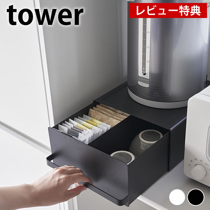 【レビュー特典付】キッチン 収納 引き出し付きキッチン家電下ラック タワー tower 引き出し 収納ケース キッチンラック コーヒーメーカー おしゃれ 省スペース ポット シンプル カウンター 2018 2019 ラック タワーシリーズ 棚 山崎実業 yamazaki ヤマジツ