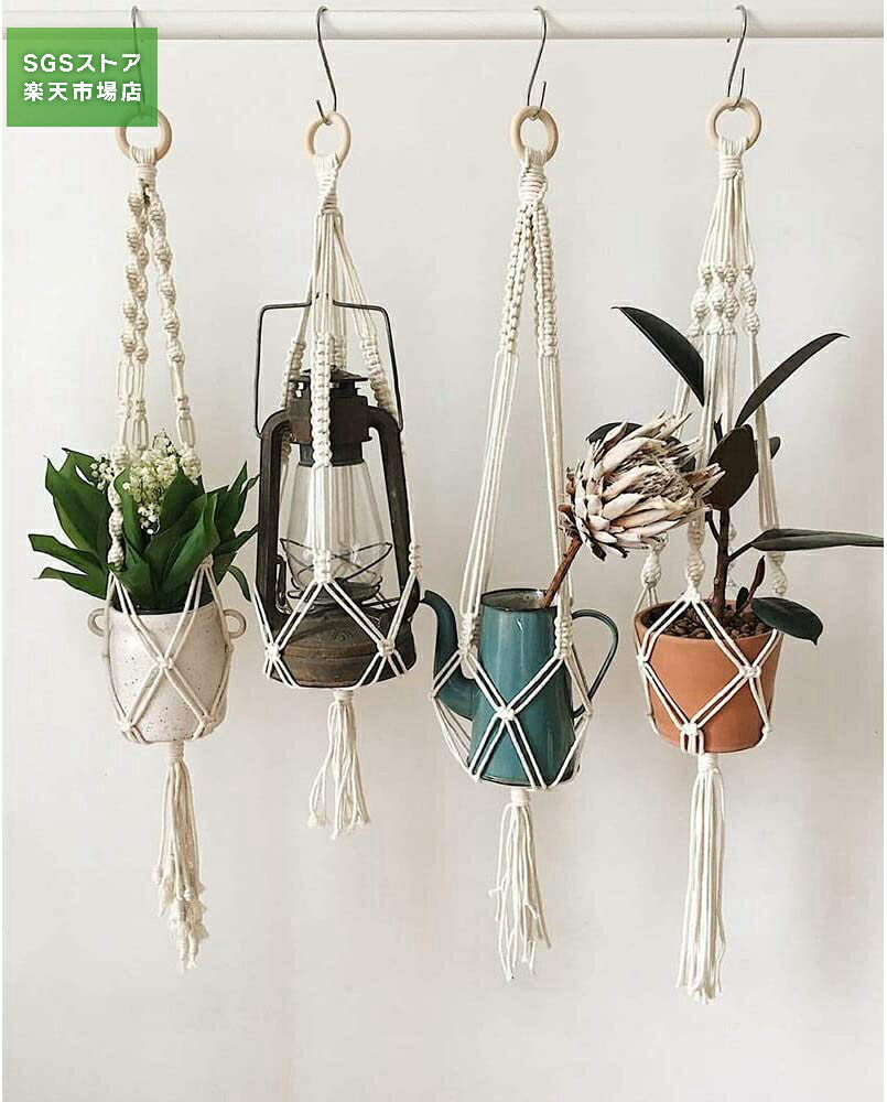 ※SS期間最大66%OFF/プラントハンガー 3個手作りの綿をぶら下げハンギングバスケット壁掛け装飾植木鉢バスケットポットは、網袋を織り 観葉植物 吊り下げ