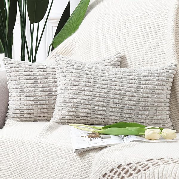クッションカバー 2枚セット 柔らかい コーデュロイ 装飾的な 枕カバー 贅沢 スタイル クッションケース ソファ用 寝室用 30 x 50 cm グレー