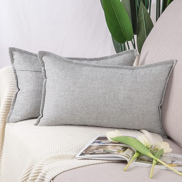 リネンスローピローカバー2枚セット ソフト装飾クッションカバー ソファ 寝室用 枕シェル 30*50 cm ライトグレー
