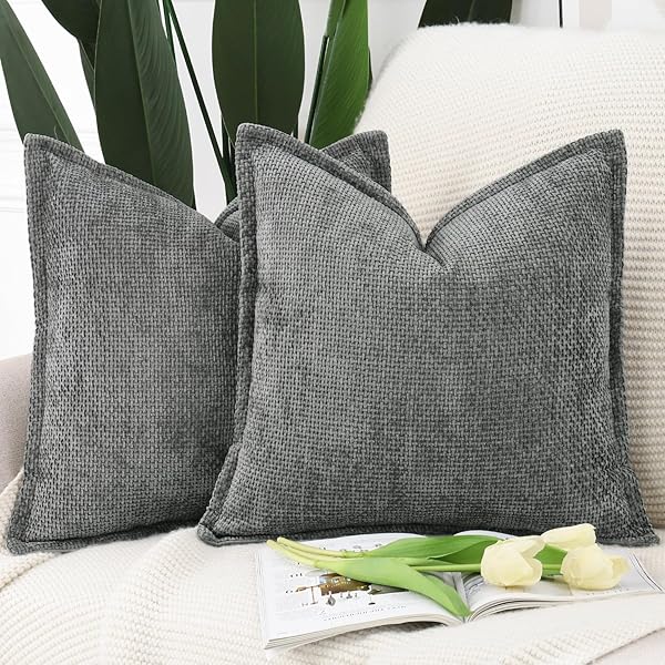 模様付き シェニール ビロード クッションカバー 2枚セット 柔らかい ショート シェニール ビロード ベルベット 装飾的な 枕カバー 贅沢 スタイル クッションケース ソファ用 寝室用 40*40 cm ダークグレー