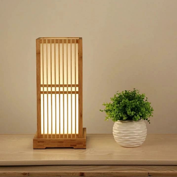 リビング 玄関照明 ルームランプ 間接照明 竹細工 ベッドサイドライト (角型)ハンドメイド テーブルランプ