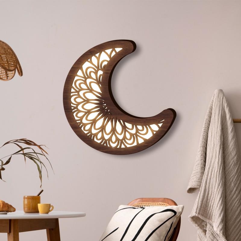 ナイトライト ボヘミアン スタイル 立体 木製 透かし彫り 三日月形 LED 照明 吊り下げ飾り 玄関飾り モダン おしゃれ インテリア ウォールデコ 常夜灯