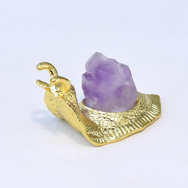 置物 天然石 原石 アメジスト カヤナイト ガーネット ミニカタツムリ オブジェ かわいい おしゃれ モダン デスク周り 卓上インテリア ホームオフィス パワーストーン 玄関 リビング 寝室 プレゼント ゴールド シルバー(x2)