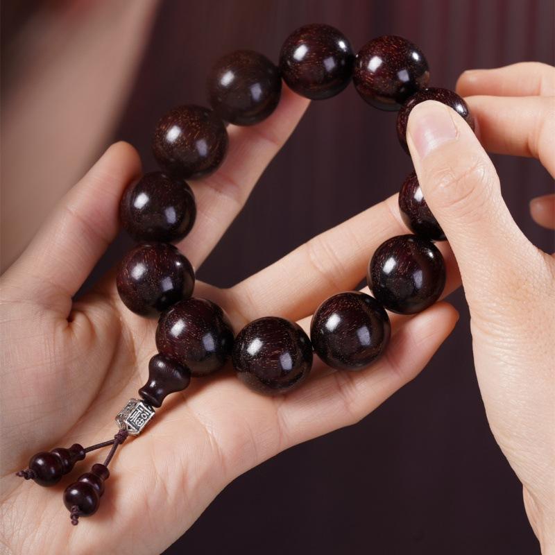 数珠 男女兼用 小葉紫檀 血檀 満金星 108玉 20mm珠 木製ブレスレット 天然木 お守り 開運 幸運 癒やし プレゼント