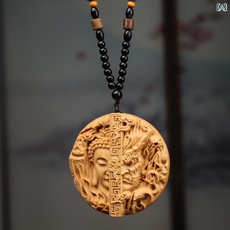 ペンダント 崖柏木製 一念 瞑想 内省 丸型 ウッド 彫刻 香木 天然素材 スピリチュアル お守り 御守り 開運 幸運 コレクション 鑑賞品 ギフト 男女兼用 アクセサリー ネックレス トップ