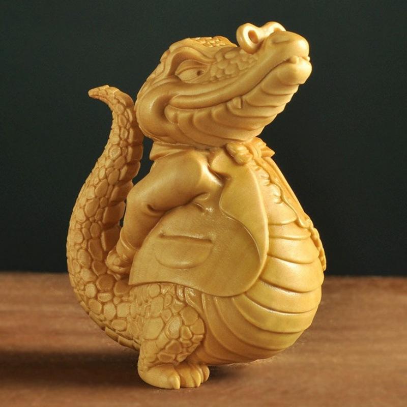 置物 黄楊木彫刻 ワニ 無垢材 ハンドメイド アニマル フィギュア 手のひらサイズ 携帯用 デスク飾り 書斎 インテリア雑貨 オブジェ 開運 縁起物 幸運 プレゼント ギフト