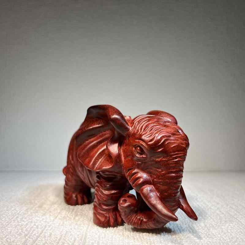 置物 インテリア 紫檀 血檀 緑檀 無垢材 木彫り 象 エレファント 富貴象 縁起物 開運 幸運 手持ち 握り物 掌サイズ コレクション 収集品 飾り オブジェ 工芸品