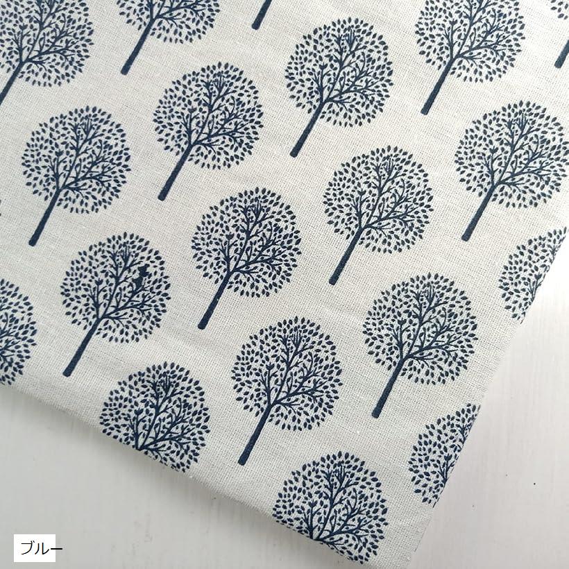 北欧風 ツリー柄 綿麻 生地 手芸用 全3種 長さ約2m 幅約155cm ブルー (ブルー)