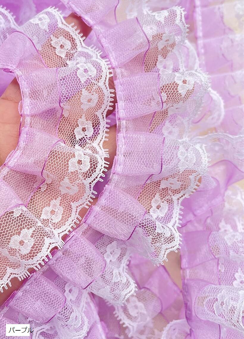オーガンジーとレースのフリルです。シースルー感のある可愛いレースプリーツです。アイディア次第でいろんなDIYが楽しめます。かわいいカラーとレースが特徴です。ドレスやコスチューム、インテリア、パーティー装飾など幅広くお使いいただけます。「サイズ」長さ:5ヤード(約4.5m)X 幅:5cm「カラー」ブラック、ブルー、オレンジ、ピンク、パープル、レッド、ホワイト、イエロー※ 他ネットショップでも併売しているため、ご注文後に在庫切れとなる場合があります。予めご了承ください。※ 品薄または希少等の理由により、参考価格よりも高い価格で販売されている場合があります。ご注文の際には必ず販売価格をご確認ください。※ 沖縄県、離島または一部地域の場合、別途送料の負担をお願いする場合があります。予めご了承ください。※ お使いのモニタにより写真の色が実際の商品の色と異なる場合や、イメージに差異が生じることがあります。予めご了承ください。※ 商品の詳細(カラー・数量・サイズ 等)については、ページ内の商品説明をご確認のうえ、ご注文ください。※ モバイル版・スマホ版ページでは、お使いの端末によっては一部の情報が表示されないことがあります。すべての記載情報をご確認するには、PC版ページをご覧ください。