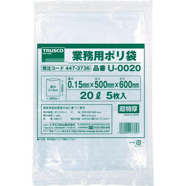 トラスコ中山 業務用ポリ袋 0.15mm×20L 5枚入 U-0020