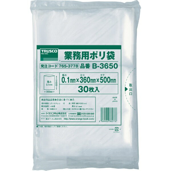 【トラスコ TRUSCO】トラスコ B-3650 厚手ポリ袋 縦500×横360×t0.1 透明 30枚入 TRUSCO