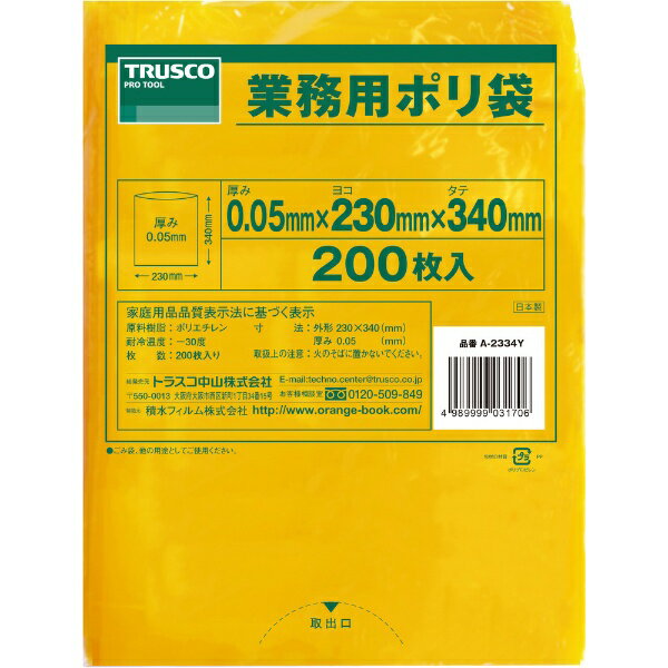 トラスコ中山|TRUSCO NAKAYAMA 小型ポリ袋 縦340X横230Xt0.05 200枚入 黄 A2334Y