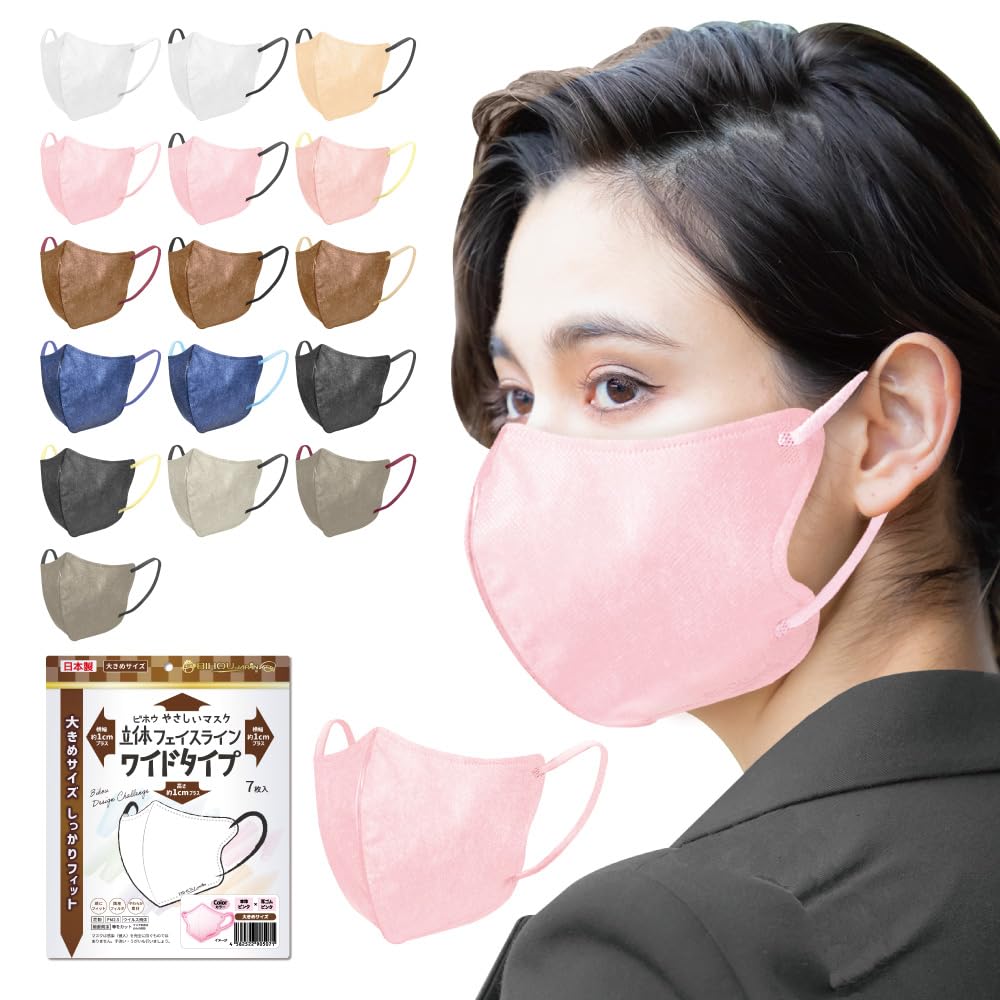 ビホウマスク 安心の日本製 自社製の国産高機能フィルタ使用! フェイスラインにしっかりフィット 頬まで覆うワイドサイズで身体の大きな方にもおすすめ! 多彩なカラーバリエーション 個性に合わせて選べる楽しさ!立体フェイスラインやさしいマスク (ピンク×ピンク) ワイドサ