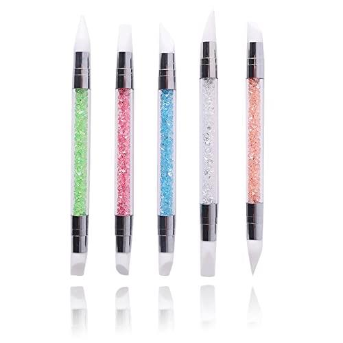 ネイルアートブラシ 5本セット シリコンブラシ ジェルネイル用ブラシ 両端ヘッド レジン道具 ペイントブラシ 簡単 アート ネイル筆セット(ホワイト、ブルー、グリーン、オレンジ、ピンクの5色セット)