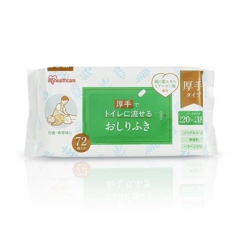 アイリスオーヤマ(IRIS OHYAMA) 流せるおしりふき 72枚 大判タイプ 20×18cm 肌に優しい 介護用 防災備蓄 大容量 OSR-72