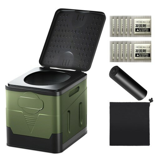 防災士推奨PYKES PEAK 簡易トイレ 携帯トイレ 耐荷重100 凝固剤 12個付 排泄袋 12枚付 折りたたみ 災害用 非常用 防災用 アウトドア 介護 防災グッズ (グリーン/S/凝固剤付き)