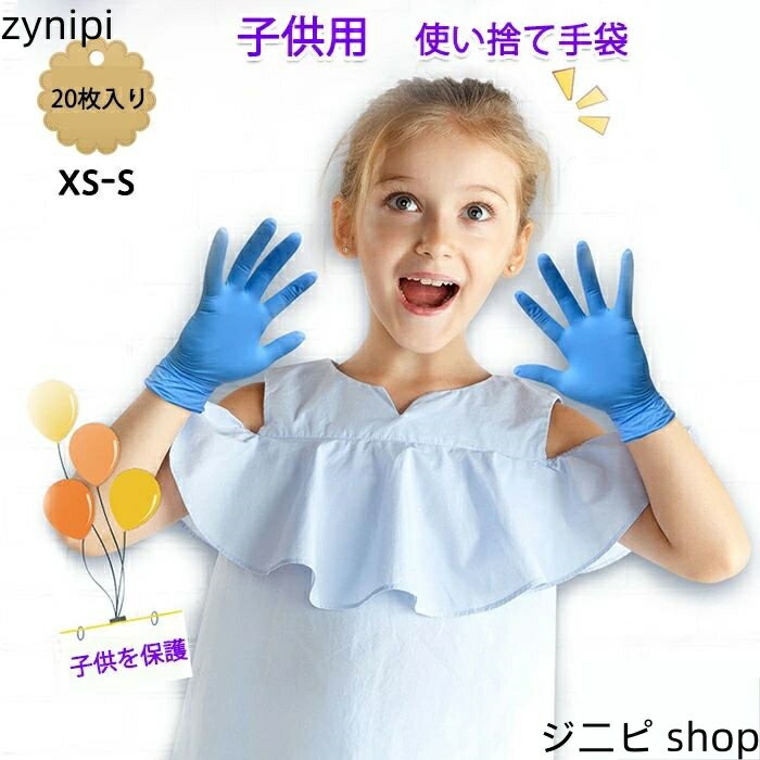 子供サイズ 使い捨て手袋 ビニール手袋 キッズ使い捨て手袋 使い捨て 手袋 子供用 二トリル手袋 キッズ用 20枚 おてつだい手袋 伸びに強い 粉無し 左右兼用 外出使いきり手袋 手荒れ防止 防災 薄手