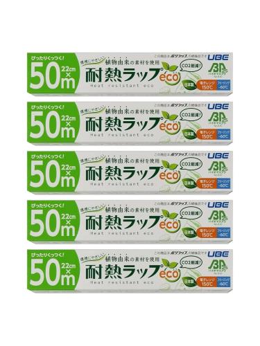 宇部フィルム 耐熱ラップ eco キッチンラップ 食品用ラップ 22cm×50m 5本セット 電子レンジ対応 食品包装 ぴったりくっつく バイオマス原料配合 防災
