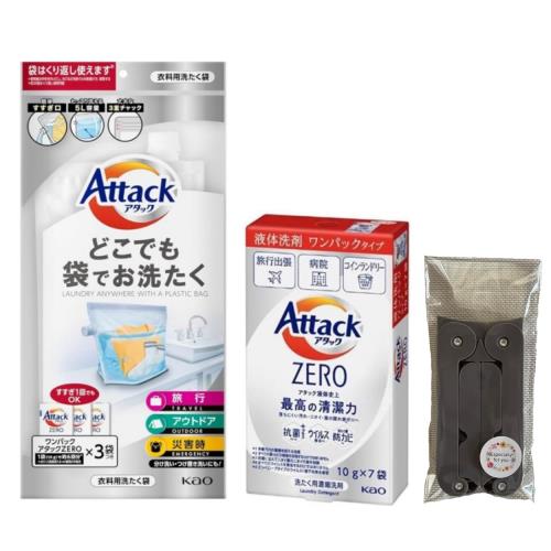 アタックどこでも袋でお洗たく(ワンパックアタックZERO 液体洗剤3袋付き)が1袋 ワンパックアタックZERO1箱(7袋入り) 旅行や出張、キャンプ、非常時などさまざまなシーンでお使いいただけます