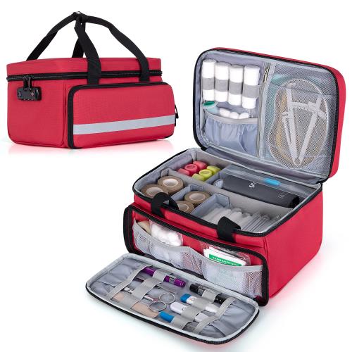 CURMIO 救急箱 救急バッグ ロック可能 防災 スポーツ 旅行 出張 往診 レッド