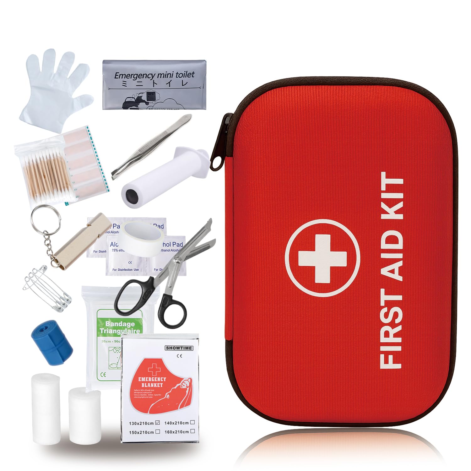 • 【持ち運びに便利な応急対応セット】 突然のアクシデントやトラブル時に備える応急用グッズセット。軽量・コンパクトな収納ポーチ付きで、持ち出しやすく収納場所にも困りません。旅行や防災用の備えとしてもおすすめです。収納ポーチは防塵・耐水性のあるナイロン素材で、屋外使用にも安心。 • 【アウトドアや非常時にも役立つ内容】 ミニトイレ、ハサミ、綿棒、ピンセット、アルミブランケット、ポイズンリムーバー、ホイッスルなど、さまざまなシーンで役立つ基本ツールをセットにしました。登山・キャンプ・防災リュック用など多目的に対応。 • 【さまざまな場所で備えとして活用】 自宅、職場、車内、アウトドア先など、どこでも収納しておけるサイズ感。ご家庭の備蓄用品や非常持ち出し袋の中身としても活用できます。 • 【初期対応に適したアイテム構成】 ケガなどのトラブル時、専門機関での処置までの一時的な応急対応を想定した構成です。本製品は応急用の補助用品です。必要に応じて速やかに医療機関を受診してください。 • 【安心サポート付き】 商品に不備があった場合は、ご購入から30日以内であれば・を承っております。ご不明点などございましたら、お問い合わせフォームよりご連絡ください。