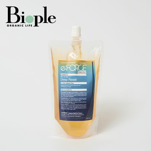 【商品説明】GUILT-FREE DRINK e:FORCE デイ・ナイト/ Deep Reset■和漢エキスの力で、ゆっくりほどき還る睡眠へ。■仕事も、感情も、情報も、まとったすべてを脱ぎ捨てて、自分に戻れる静かな夜、古来より乱れた生活リズムを整えたい方に良いとされているラフマとアスリートの間で体力維持のサポートに重宝されているエゾウコギが気持ちと体のこわばりをほどきます。「深森深夜の睡眠」をテーマにつくられた100%自然由来和漢エキス飲料■あなたの"想い"を和漢にのせて■深森深夜の睡眠が、私の頑張りを解放して、うねる感情と沈む体に寄り添う時間に。和漢エキスの力が静かな安心感を与え、あなたらしさを引き立ててくれる。【こんな方におすすめ】・日常のうねる気分と沈む体を内側から解放したい方・快適な睡眠を目指したい方・朝から軽やかに冴える1日を迎えたい方・その日の疲れを翌日の朝に持ち越したくない方【キー成分】【ラフマ】緊張感が続く日常に心地よい夜のリズムを。【エゾウコギ】どっと疲れた日にも自分を整える時間に。【八角(スターアニス)】崩れそうなバランスを本来のリズムに整える。【リンデンフラワー】うねる気持ちに静かな時間を。 【ご使用方法】・常温で飲む場合はそのままお飲みください。・冷やして飲む場合は冷蔵庫で冷やすか、氷の入ったグラスに注いでお飲みください。・温めて飲む場合は耐熱容器に移して電子レンジで温めてお飲みください。<電子レンジ目安:500W 2分30秒>【内容量】350g【商品サイズ】W110×H215×D33.5mm【特定原材料】●アレルギー情報:アレルギー特定原材料28品目不使用。【全成分】●原材料名:アガベシロップ(メキシコ製造)、レモン果汁、エゾウコギ、スターアニス、ラフマ、リンデンフラワー、グリーンカルダモン、レモングラス、クローブ、粗塩(ゲランド産)【原産国】日本●パッケージはリニューアル等の理由により、写真と異なる場合がございます。●パッケージのリニューアル等の理由により、成分・処方が記載と異なる場合がございます。●予告なくパッケージ仕様が変更になる場合がございます。 =========================== ・広告文責:株式会社マッシュビューティーラボ TEL:0357745565・メーカー名:パウダーフーズフォレスト株式会社・商品区分:食品・生産:日本============================