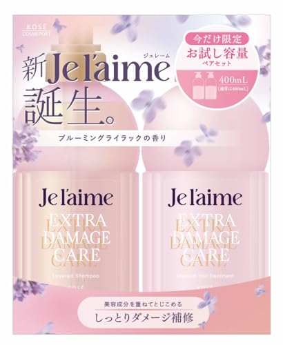 オフホワイト/400mL/-・美容成分を重ねてとじこめるレイヤードパック処方で、記憶に残る「髪の質感」・「香り」を叶えるシャンプー&トリートメント。・深刻なダメージを補修し、しっとりうるおう髪へみちびくエクストラダメージケアタイプ。・香るたび思い出す、ブルーミングライラックの香り。・容量 400mL+400mL お試しセット。商品紹介 美容成分を重ねてとじこめるレイヤードパック処方で、記憶に残る「髪の質感」・「香り」を叶えるシャンプー。深刻なダメージを補修し、しっとりうるおう髪へみちびくエクストラダメージケアタイプ。香るたび思い出す、ブルーミングライラックの香り。容量 400mL+400mL お試しセット。 原材料・成分 ジュレーム レイヤード シャンプー(エクストラダメージケア) 水・オレフィン(C14−16)スルホン酸Na・ココイルグルタミン酸TEA・コカミドプロピルベタイン・PPG−2コカミド・ココアンホ酢酸Na・グリセリン・アーモンド油・エクトイン・トコフェロール・ヒアルロン酸Na・ベタイン・加水分解ケラチン・加水分解コラーゲン・加水分解シルク・加水分解ダイズタンパク・BG・DPG・EDTA−2Na・イソステアリン酸PEG−50水添ヒマシ油・オレイン酸・クエン酸・ココイルメチルタウリンNa・シクロヘキサン−1,4−ジカルボン酸ビスエトキシジグリコール・ジラウラミドグルタミドリシンNa・ソルビトール・ポリクオタニウム−10・ラウリン酸PEG−2・ラウロイルアスパラギン酸Na・ラウロイルメチルアラニンTEA・フェノキシエタノール・安息香酸Na・香料 ジュレーム レイヤード ヘアトリートメント(エクストラダメージケア) 水・ジメチコン・PEG−8・セテアリルアルコール・ベヘニルアルコール・PPG−9ジグリセリル・ベヘントリモニウムクロリド・ジステアリルジモニウムクロリド・グリセリン・安息香酸アルキル(C12−15)・アーモンド油・エクトイン・トコフェロール・ヒアルロン酸Na・ベタイン・加水分解ケラチン・加水分解コラーゲン・加水分解シルク・加水分解ダイズタンパク・BG・DPG・EDTA−2Na・イソプロパノール・オレイン酸・クエン酸・クエン酸Na・シクロヘキサン−1,4−ジカルボン酸ビスエトキシジグリコール・ジメチコノール・ジラウラミドグルタミドリシンNa・ステアリン酸グリセリル・ラウレス−23・ラウレス−4・ラウレス硫酸Na・水添パーム油・水添ポリイソブテン・水添ヤシ油・フェノキシエタノール・安息香酸Na・香料 使用方法 ジュレーム レイヤード シャンプー(エクストラダメージケア) ●髪と地肌をぬらしてから適量を手にとり、泡立てながら地肌をマッサージするように洗い、よくすすいでください。 ジュレーム レイヤード ヘアトリートメント(エクストラダメージケア) ●シャンプーの後に軽く水気をきり、適量を髪全体になじませてから、よくすすいでください。 ●ジュレーム レイヤード シャンプー(エクストラダメージケア)をあわせてお使いになることをおすすめします。 ●中身が出にくいときは、底を軽くたたいてからお使いください。 ●本品3プッシュ(約9mL)とジュレーム ブースターオイル500円玉大(約2mL)を混ぜて使うと、より効果的です。 安全警告 高温の場所や日のあたる場所には保管しないでください。 天然由来成分を配合しているため、中身が変色することがありますが、品質には問題ありません。