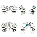 |  WWahuayuan 4 Sheets Crystal Festival Face Jewels Gem Nipple Chest Sticker Party Bindi Body Jewelry Stickers Nightclub Masquerade Rhinestone Makeup Tattoo Temporary Face Rocks