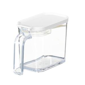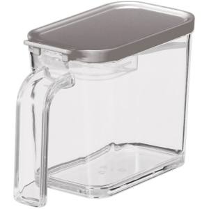 オシャレなモノトーンで、湿気に強いパッキン付きの調味料ポット。毎日の調理に便利な、700mlの一般的な容量の調味料入れです。フタの色で調味料を使い分けられて、わかりやすい。シール(さとう + しお + 小麦粉 + 空欄3つ=計6つ)も付属しているので、より分かりやすい。計量に便利な「すりきり」と、「小さじ(5ml)スプーン」が付属しています。ポットの内側に付属(取り外し可能)した摺り切りは使いやすく、山側ですり切りを使えば「小さじ1/2」も簡単に計れます。すり切り板に付属のスプーンがセットできるので、調味料に埋もれたり触れたりすることがありません。すり切り板は外して洗うことができるので、清潔が保てます。火のそばに置かないでください。レモン等の柑橘(かんきつ)類の皮に含まれるテルペン、または油脂によって変質することがあります。パッキンはついていますが、完全密閉ではありません。(フカフカした発泡スチロールのような感触です)サイズ(約)幅8.8×奥行15.5×高さ10.4cm材質:本体・フタ/PS すり切り板・スプーン/PP パッキン/発泡PE重量(約)174g容量(約)700ml耐熱温度:本体・フタ/70度 すり切り板/110度 パッキン/70度 耐冷温度:本体・フタ/-30度 すり切り板/-20度 パッキン/-30度