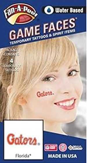 ファン・エー・ピール フロリダ大学 (UF) ゲイター – 水ベースの一時的なスピリット タトゥー – 4 ピース – オレンジ/ホワイト ゲイター Fan A peel University of Florida (UF) Gators Water Based Temporary Spirit Tattoos 4-Piece Ora