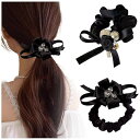 シュシュ 細め ヘアゴム 髪ゴム 髪留め 蝶結び スタイリッシュ 優雅 ヘアアクセサリー シンプル エレガント 上品さ 髪飾り 女性 レディース 高弾性 おしゃれ 日常 通勤 プレゼント 贈り物 2点セット