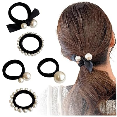 シュシュ ヘアゴム 髪ゴム 髪留め パール付き スタイリッシュ 優雅 ヘアアクセサリー シンプル エレガント 上品さ 髪飾り 女性 レディース 高弾性 おしゃれ 日常 通勤 プレゼント 贈り物 5点セット