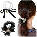 ヘアゴム 髪ゴム シュシュ 細め パール付き 華やか キラキラ ヘアアクセサリー シンプル サテン 森ガール エレガント 上品さ 髪飾り 女性 高弾性 おしゃれ 日常 通勤 プレゼント 贈り物