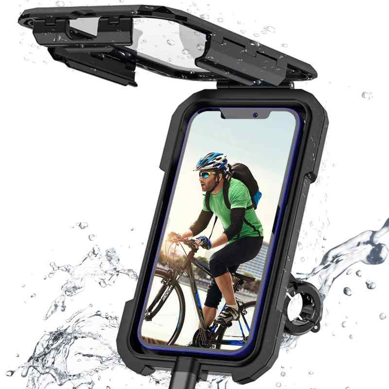 【防水?防塵対応】 防水等級IP67、優れた防水性能を持っています。完全包装の形は携帯電話にほこりが入らないようにすることもできます。スマートフォンやモバイルバッテリー等を水滴やホコリから守る防水?防塵対応。ロングツーリングにも対応出来る様、充電ケーブル差し込み口も搭載。急な雨や海沿いなどでも安心です。【超高感度スクリーン】 高感度の透明タッチスクリーンを搭載している自転車スマホホルダーは、より便利に使えるます!防水ケースにスマートフォンをインストールし、ケースをロックします。 ケース内(スマホ背面)にはスプリング機構がスマートフォンを背面からスクリーン面に押し付けます。スマートフォンの画面を最大限に透明なタッチパネルに密着させ、感度を高め、本体を固定します。【オートアジャスト搭載】厚さ10.5 mm以内のスマートフォンは、薄いものも厚いものも、背面の自動調整バネ機構がスマートフォンを前面に押し出し、安定性や操作性を高めます。カメラの画面は上部に設置され、カメラ部分は透明なカバーでホルダーを外しなくても写真を撮れます。【360度回転ボールマウント】 ジョイント部分の球体により、携帯が360°回転可能です。強化キャッチとナットは極限まで精度を高め、バイクや自転車の振動にもしっかりと姿勢を保つ安定感を実現。いつでも片手で自由自在に縦横、角度の調整が可能です。【対応参考機種】 iPhone 13 / iPhone 13 Pro / iPhone 13 pro Max/iPhone 12 / 12 Pro / 12 Pro Max / XS Max / XR / X / 8 Plus/ 8 / SE / SAMSUNG Galaxy S9 / S9 Plus / Note 8 / S8 / S8 Plus / Huawei / Google Pixelなど5.5-6.8インチ※スマホケースの寸法も含めたサイズでご検討下さい。必ず実際の寸法を測定してから購入してください。(注意:ホームボタンは使えません)