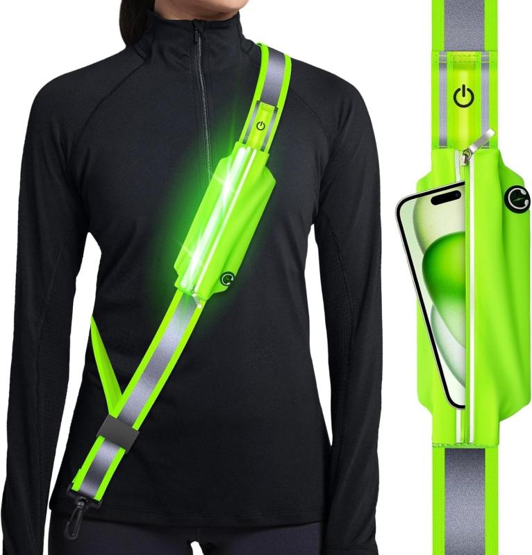 LED反射タスキ光るタスキType-C充電式電話ホルダー付き反射バンド夜間ランニングライトウォーキング自転車反射板犬散歩安全反射ベストセーフティーグッズ蛍光タスキ夜光る