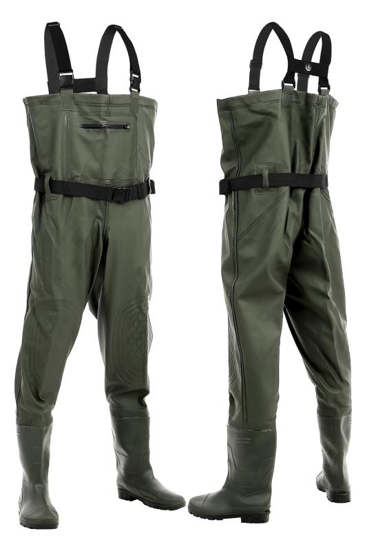 [unizom] ウェーダー 釣り 胴長 長靴 【ヒザ補強・簡単脱着・伸縮ベルト】 ラジアルソール 完全防水 丈夫 チェストハイ フィッシングウェーダー✅【防水性と着心地にこだわった生地】 表地はPVC・裏地はニット生地を使用しており防水性とともに中の湿気を排出可能な機能性素材。表地は高い耐水性・撥水性と油や酸・アルカリにも強く防寒性もあり、柔らかく動きやすさも考慮された生地。裏地のニット生地は蒸れにくく、さらっとした肌触りで素早く脱着が可能。多少気温が高くとも快適に使用する事ができます。✅【進化したベルト】肩ベルトと腰ベルトを伸縮素材にすることにより、動きやすく長時間の着用でも痛くなりにくい肩ベルトはH形のサスペンダーでしっかりフィットし調整も可能。腰ベルトももちろん調整可能で様々な体型でも動きやすくしっかりフィットで安心安全✅【チャック付収納ポケット】物が落ちないようチャック付きポケットでスマホなど貴重品を濡らさず収納出来ます。✅【膝補強】最も傷つきやすい膝部分を広範囲でしっかり補強耐久性をUPさせ、海釣りや河川での釣りに欠かせません。✅【動きやすく使いやすいラジアルソール】短めのブーツで動きやすく脱着もしやすいブーツの継ぎ目は高温圧着密封することにより効果的な浸水防止に努めました。汎用性の高いラジアルソールで様々な場面でご使用いただけます。長靴部分の製造過程で若干変色がある場合がございますが、性能には一切問題ございません。恐れ入りますがご了承くださいませ。