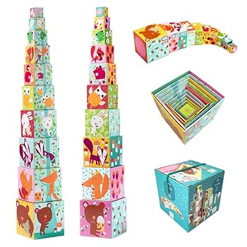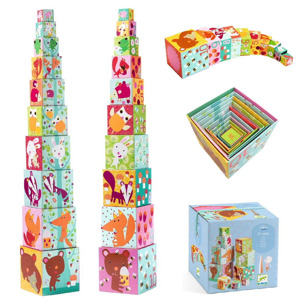 【中古】【非常に良い】DJECO ジェコ 10フォレスト ブロックス スタッキング キューブ ブロックス つみき 知育玩具 赤ちゃん ブロック 積み上げ 大きい スタッキング 知育 重ねる 紙製 入れ子 丈夫 モンテッソ