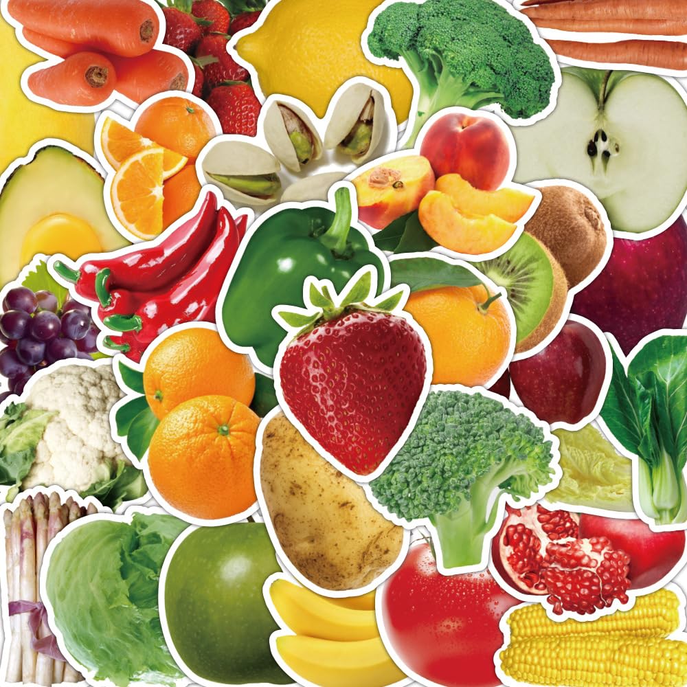 Generic リアルなフルーツと野菜のステッカー 50 枚、ビニール素材、ウォーターボトル、ラップトップ、ノートブック用、大人、ティーン、女の子、男の子、学生向け