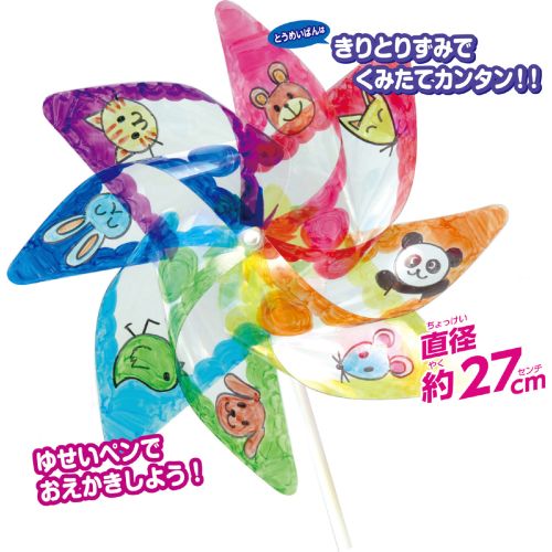 ↑↑↑正確な在庫状況は上記バナー「在庫状況を確認する」をクリックして頂き、必ずご確認ください。 ■油性ペンでおえかきしよう! とてもよくまわる! のり・はさみ不要!羽根は穴あけ加工済!商品サイズ : 完成サイズ:約φ270mmセット内容 : 透明板2種(切リ取リ加工済)×各1、フタ×1、キャップ×1、ポール(φ7×300mm)×135g材質 : PP、PVC1個梱包形態 : 袋入り切り取り済の透明板で組み立て簡単!油性ペンでお絵かきしよう!