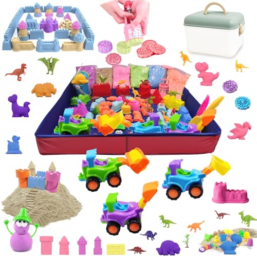 室内砂場セット室内遊び 砂遊び 型 砂粘土3.0 KG 海洋動物 恐竜 城などの金型 付き収納ボックス 折りたたみプール 建設車両 おもちゃセット 砂遊び おもちゃ