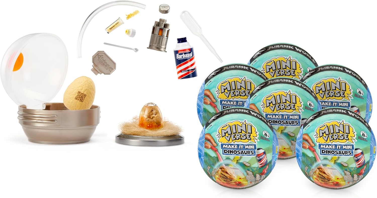 MGA Miniverse メイクイット ミニ恐竜 ジュラシック・ワールド – サプライズDIYコレクション 2種 6パック セット(卵 or シリンダー) 8歳以上向け 映画『ジュラシック・ワールド』の世界が、手のひらサイズで楽しめる!大人気MGA Miniverseシリーズから、赤ちゃん恐竜を自分で“誕生”させてコレクションできるサプライズトイが新登場。 ■ ミニ恐竜を誕生させよう! カプセルを開けると、恐竜の卵またはハイブリッドシリンダーが登場。付属のDNAパウダーと液体を注入し、振って待つと…中から赤ちゃん恐竜が出現!本当に自分で恐竜を育てたようなワクワク体験が楽しめます。 ■ 全12種類+サプライズ要素 コレクションできる恐竜は全部で12種類。どの恐竜に出会えるかは開けてからのお楽しみ。開封のたびに新しい発見があり、コレクター心を刺激します。 ■ 飾って楽しめるインキュベーターディスプレイ パッケージのカプセルは、そのまま恐竜の“インキュベーター”ディスプレイに変身。開けたままでも閉じたままでも飾れるので、コレクションケースとしても大活躍! ■ 学びと遊びの両立 QRコードをスキャンすると、恐竜に関する豆知識がチェック可能。遊びながら学べる知育要素も入っており、恐竜好きのお子様にぴったりです。 ■ ギフトにも最適 誕生日プレゼントやクリスマスギフトはもちろん、ジュラシックワールドファンの大人のコレクターにもおすすめ。DIY感覚とサプライズ開封の楽しさで、子どもから大人まで夢中になれます。 詳細は動画をご参照ください。 ※インポート商品(必ずご確認ください) ・外装に傷や破れなど、輸送上の傷みが生じる場合がありますので、プレゼントには不向きな場合があります。 ・万が一、内容品の損傷や不具合があった場合は、当店までお問い合わせください。 ・モデルチェンジなどにより、デザインや内容品に変更が生じる場合があります。 ・輸入品のため、取扱説明書などが日本語でない場合があります。