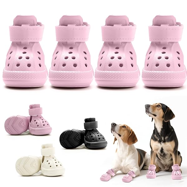 「SENMUUP」犬靴 犬用ブーツ ドッグシューズ 犬用サンダル 春夏用 軽量通気 メッシュ 抗菌防臭 柔らかく快適 履かせやすい 脱げにくい 肉球保護 滑り止め 散歩 雨の日 防水 介護 傷舐め防止 夜間反射テープ付 小&中&大型犬 8サイズ 4個セット (ピンク, 1#)