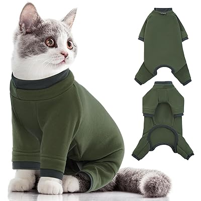 IECOii 猫服 柔らかくて肌に優しい猫 術後服 粘着性の素材 軽量 調整可能 傷口保護 四足ペット術後ウェア 抜け毛を防ぐ 猫 服 皮膚保護 男女兼用 グリーン 2XL