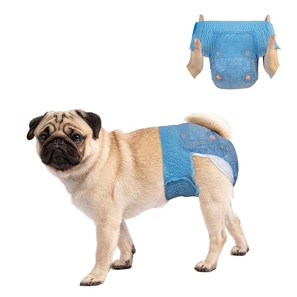 Dono 犬 おむつ 女の子用 男の子用 デニム風 犬オムツ 360°幅広伸縮ウエストバンド付きおむつカバー 漏れない 通気性 長時間 使い捨てマナーパンツ 発情期 生理 介護用 おしっこ吸収 おむつウェア 超小型犬 小型犬 中型犬 猫用 紙おむつ