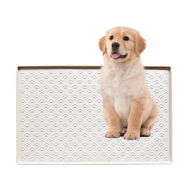 BaraRose 犬 トイレトレー シリコン ワイド トイレトレー ワイド 【可愛い肉球柄 &】エッジ加工で漏れ安心 トイレマット ペットシーツ お手入れ簡単 (ホワイト, 30x48cm)