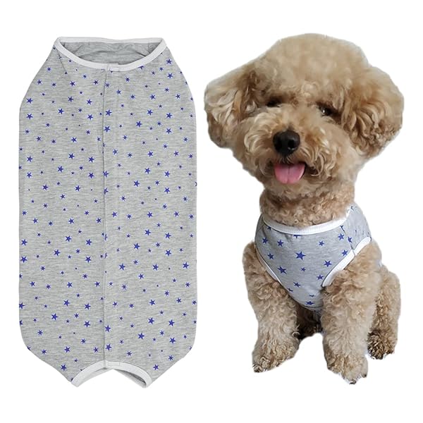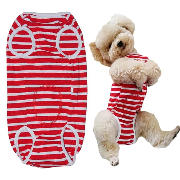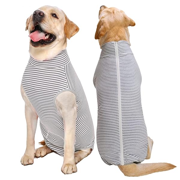 KUVEELA PET 術後服 犬服 犬術後服 術後ウェア 術後カバー服 保護服 介護服 避妊 離乳 傷口保護 皮膚病 大型犬 中型犬(グレーストライプ 4L)